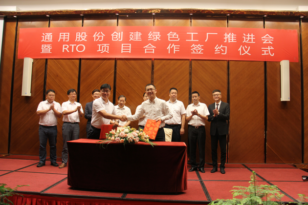 8月29日,通用股份創(chuàng)建綠色工廠推進(jìn)會(huì)暨RTO項(xiàng)目合作簽約儀式舉行,通用股份與韓國(guó)大洋環(huán)境株式會(huì)社正式簽署項(xiàng)目合作協(xié)議,雙方就RTO