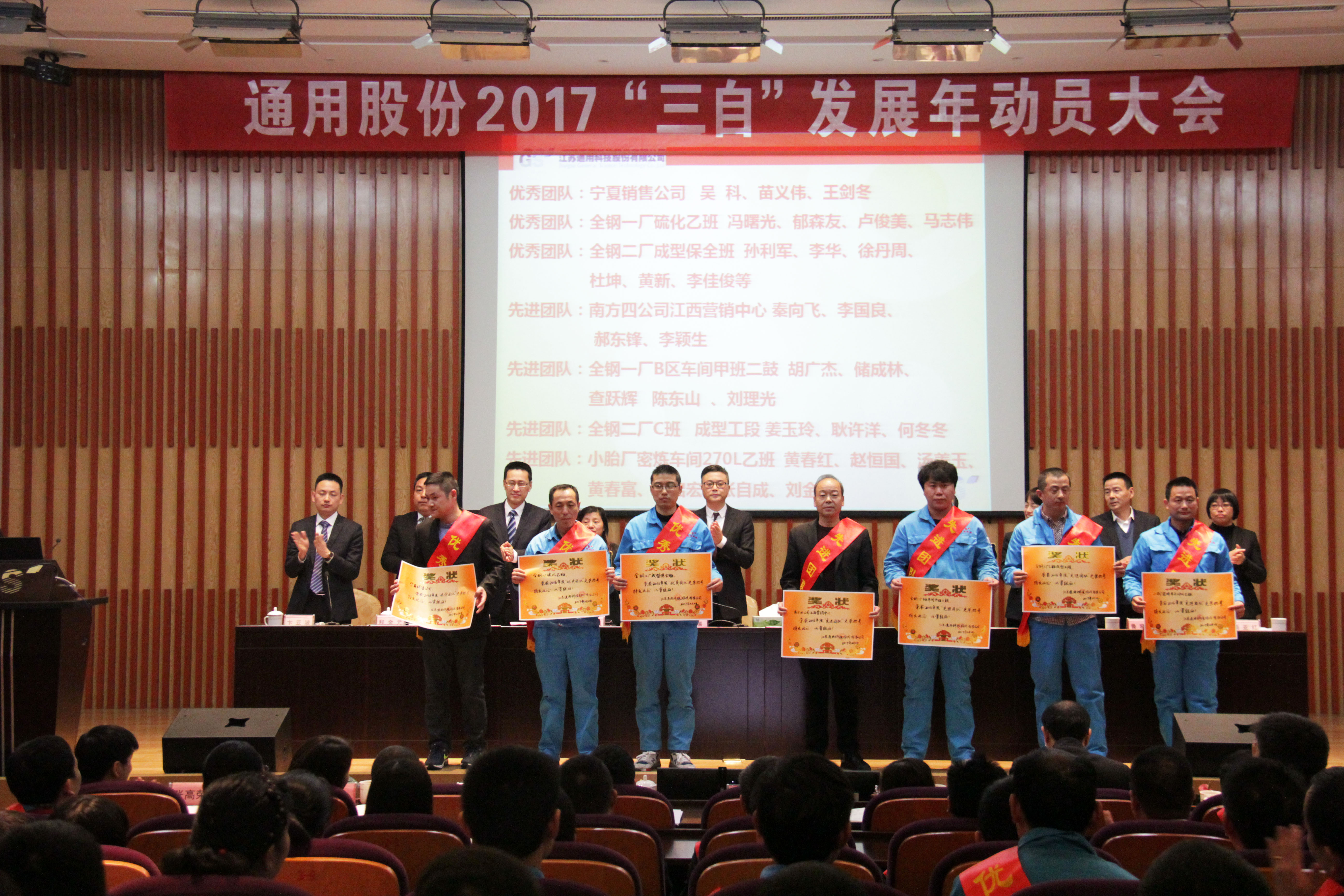 過去的2016伴隨著國民經(jīng)濟(jì)進(jìn)入新常態(tài),輪胎行業(yè)迎來了新一輪的挑戰(zhàn)。在全體通用人的奮斗拼搏下,通用股份不僅實現(xiàn)了IPO在上海證券交易所的成功上市,同時公司經(jīng)營保持著強(qiáng)勁的發(fā)展勢頭,取得了驕人的成績。這是通用人智慧與汗水澆灌的結(jié)晶。大會隆重表彰了100名先進(jìn)和優(yōu)秀員工及團(tuán)隊,他們默默耕耘在各條戰(zhàn)線上,以敬業(yè)奉獻(xiàn)與開拓進(jìn)取詮釋了拼搏的價值,是所有人學(xué)習(xí)的楷模。