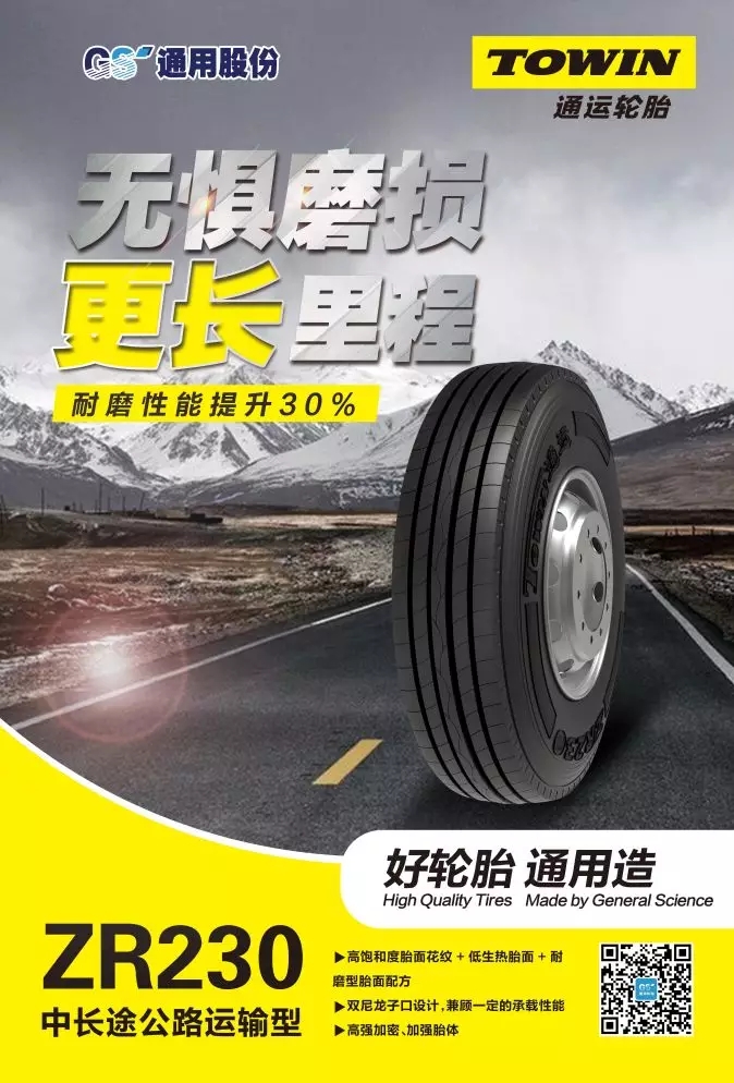 通運品牌作為通用股份旗下主力品牌,始終以匠心打造高性價比輪胎為使命,尤其是在2019千里馬之夜上推出的專注于中長途公路運輸型輪胎ZR230,以解決用戶痛點為研發中心,成功的解決了車輛行駛里程增加時,導致輪胎內部膠料生熱高,產生肩空、冠空等一系列問題,以其不懼磨損,更長里程,一經推出就得到了廣大司機朋友們的青睞.