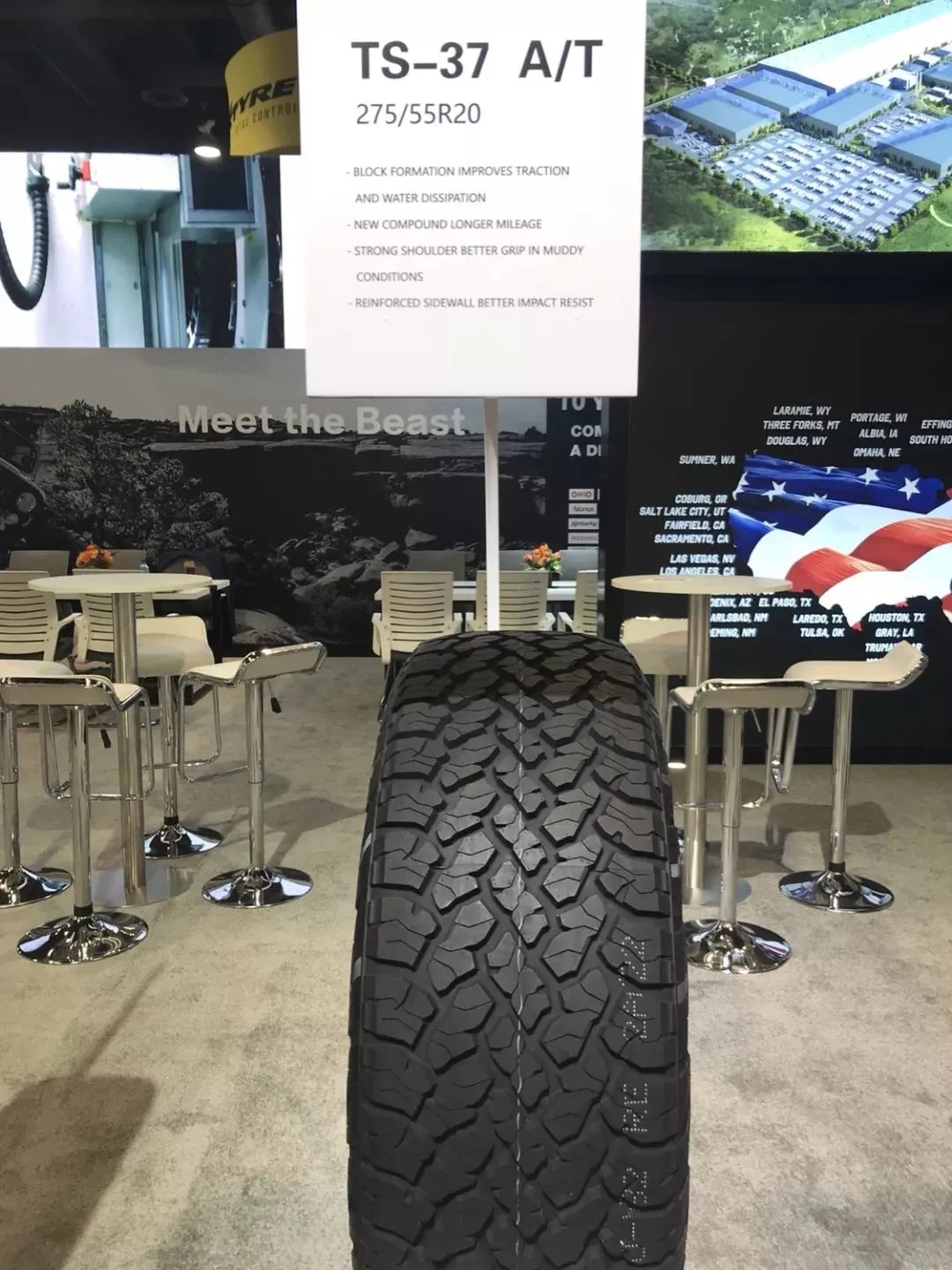 通用股份TBBTIRES品牌登陸美國市場以來,銷量不俗,深受國外市場青睞,參展的觀眾也經常針對性的參觀并咨詢相關問題。本次SEMA展會上,TS-07H/T、TS-37 A/T等一系列性能優異的輪胎產品受到了外國客戶們的一致好評。