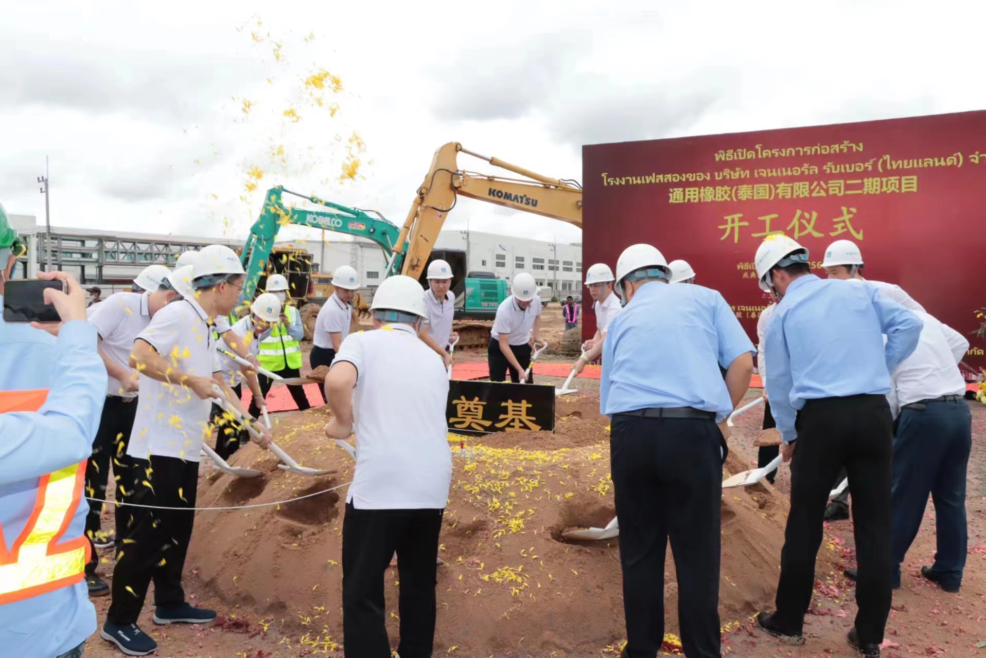 隨著各位領(lǐng)導(dǎo)共同完成“第一鏟土”,現(xiàn)場(chǎng)禮花滿(mǎn)天、禮炮齊鳴,奠基儀式圓滿(mǎn)落成,標(biāo)志著通用橡膠泰國(guó)公司二期項(xiàng)目正式起航。
