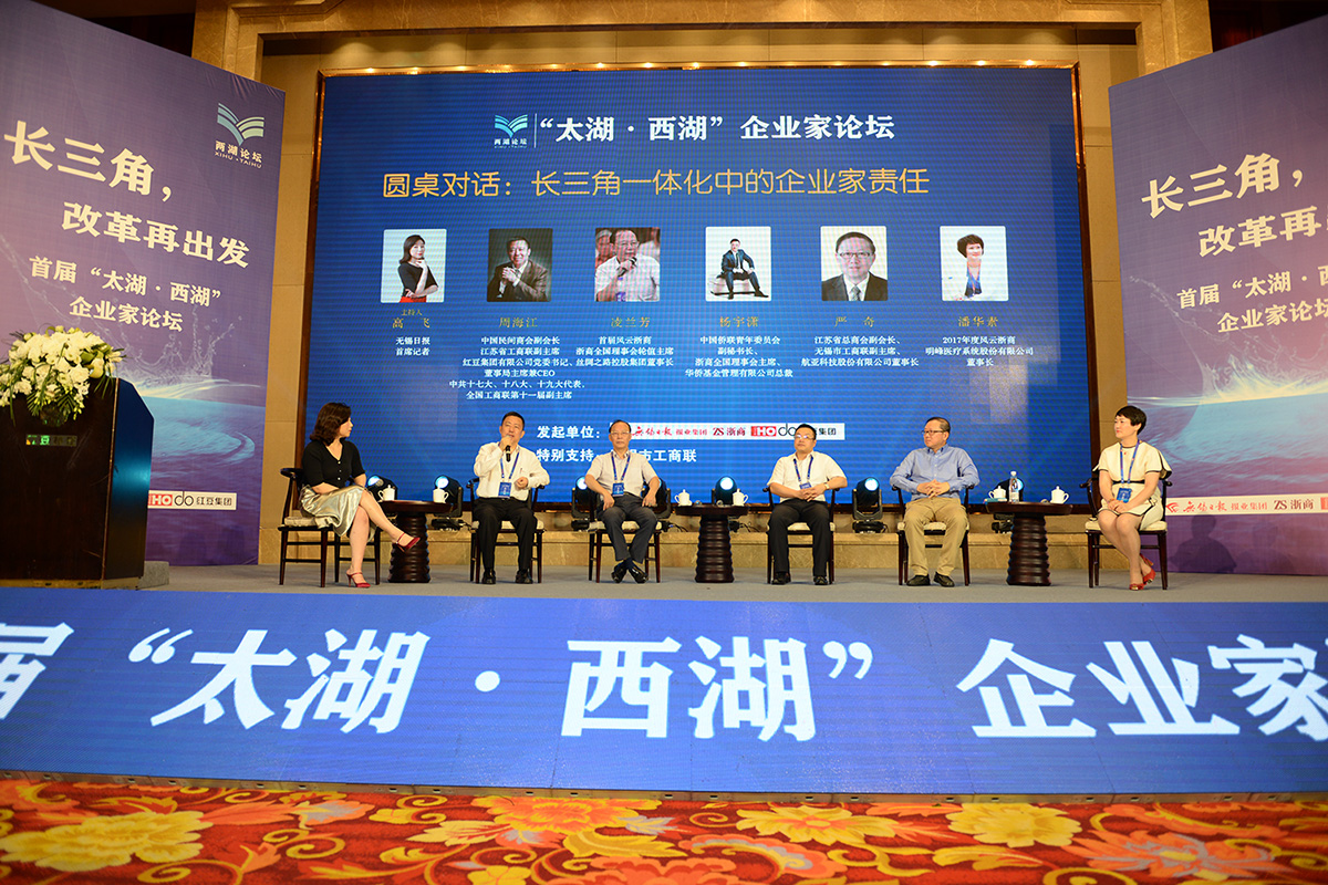 論壇上,洪銀興作了題為《積極應(yīng)對(duì)貿(mào)易戰(zhàn)》的主旨演講。“太湖•西湖”企業(yè)家聯(lián)盟宣布成立,“太湖•西湖”企業(yè)家聯(lián)盟宣言發(fā)布。紅豆集團(tuán)董事局主席周海江接受“太湖•西湖”企業(yè)家聯(lián)盟輪值主席授牌,無(wú)錫日?qǐng)?bào)報(bào)業(yè)集團(tuán)黨委書(shū)記楊建代表聯(lián)盟秘書(shū)處接受授牌。江浙兩地企業(yè)家圍繞“長(zhǎng)三角一體化發(fā)展中的企業(yè)家責(zé)任”展開(kāi)圓桌對(duì)話(huà)。
