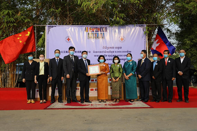 儀式上,西港特區(qū)公司總經(jīng)理曹建江代表西港特區(qū)中方控股股東紅豆集團接過了柬埔寨紅十字會頒發(fā)的感謝狀,這張由柬埔寨紅十字會會長、首相洪森夫人文拉尼親王署名的感謝狀高度肯定了紅豆集團捐贈柬埔寨100萬只口罩的義舉,“柬埔寨紅十字會將使這批物資發(fā)揮其最大的作用,用于進行人道主義活動,幫助柬埔寨人民抗擊及抑制Covid-19疫情的傳播”。