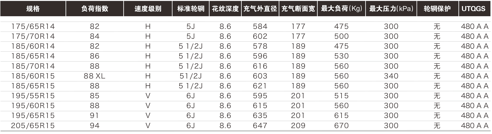 三條優(yōu)化寬度的縱向排水溝保障了輪胎的濕地排水性能,有效防止了輪胎的側(cè)向水滑。