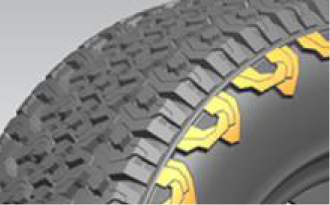 采用高耐磨橡膠和填充增強(qiáng)體系有效抵御惡劣路況行駛中的外部損傷,同時(shí)還能提高車輛泥地和沙地行駛的牽引性能。